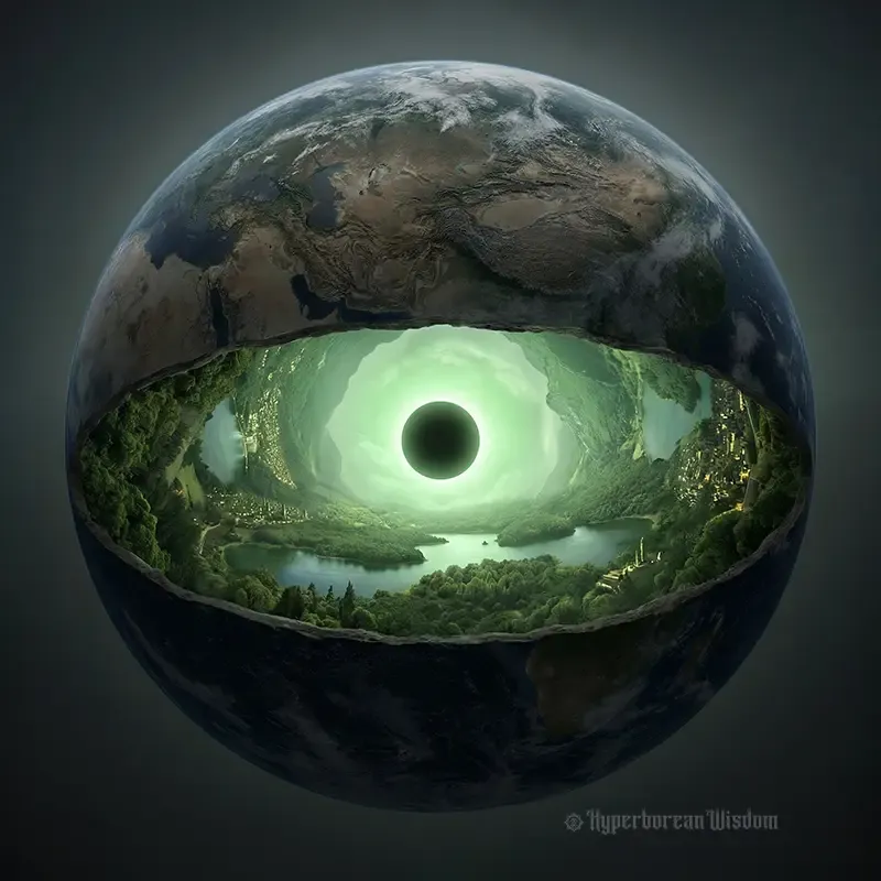 According to the principles of Hyperborean Physics, the Earth is not a solid sphere floating in space as conventionally understood. Instead, the Earth is described as concave, a specific structure resulting from the helicoidal turn of the macrocosmic serpent design. This concavity is not merely a geological formation but serves as a metaphysical door or exit from the created order, offering a strategic path for spiritual liberation.